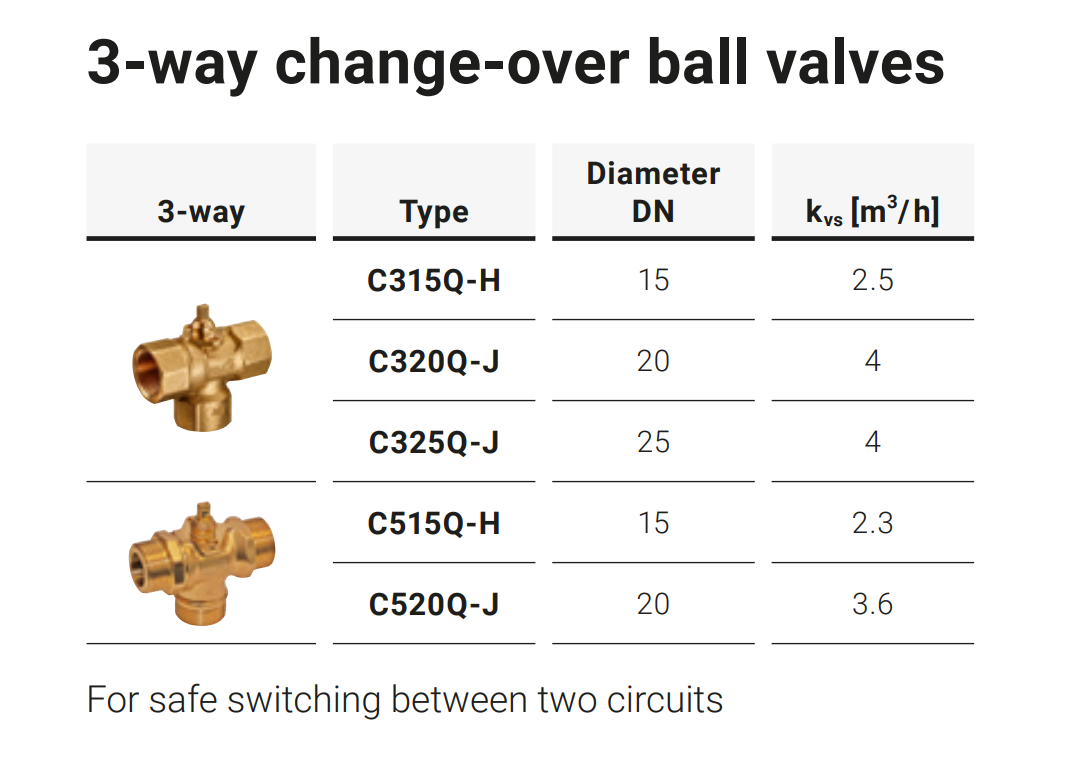 Manually adjustable kv values with the 2-way control valves