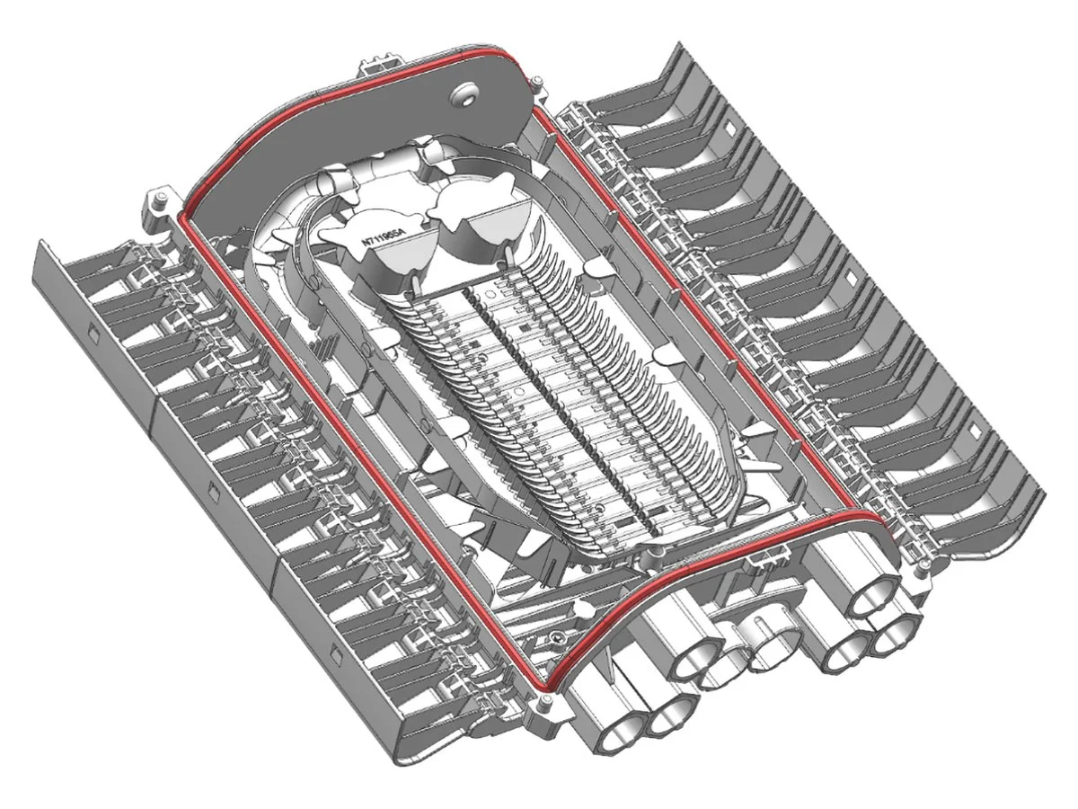 BPEO Fibre Closure Size 2 Cable Distribution Point for one express cable and up to 6 branch cables. Organiser holds up to 30 splice trays