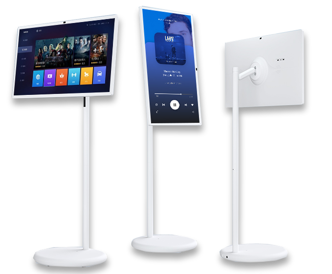 A portable smart TV with a high-definition touchscreen and a built-in large battery. It comes with an adjustable stand and a rotatable screen, allowing long use without plugging in.