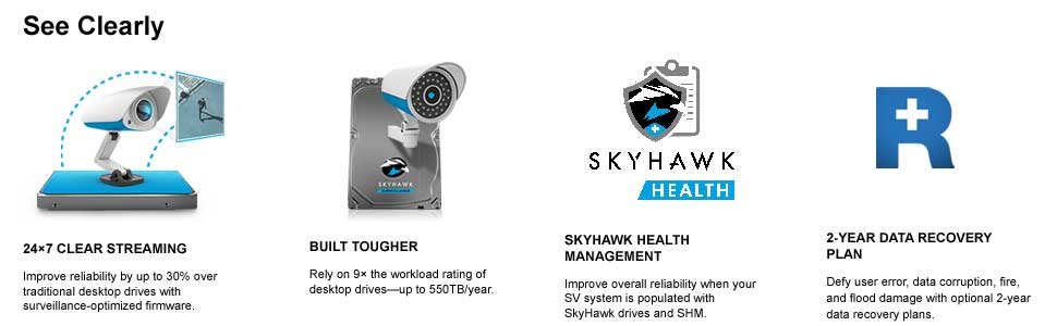 Maximum 180TB/Year workload rating 3× the workload rating of desktop drives for reliable performance in write intensive surveillance systems