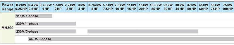 Overload capacity up to 150% / 60 sec, and 200% / 3 sec. Suitable for constant torque applications