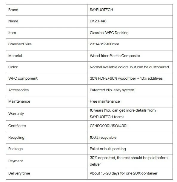 WPC decking is an environmentally friendly material composed of wood fiber and plastic which has both the natural texture of wood and the durability of plastic and is widely used in a wide range of scenarios